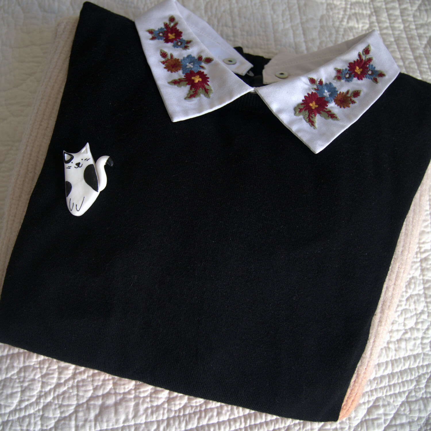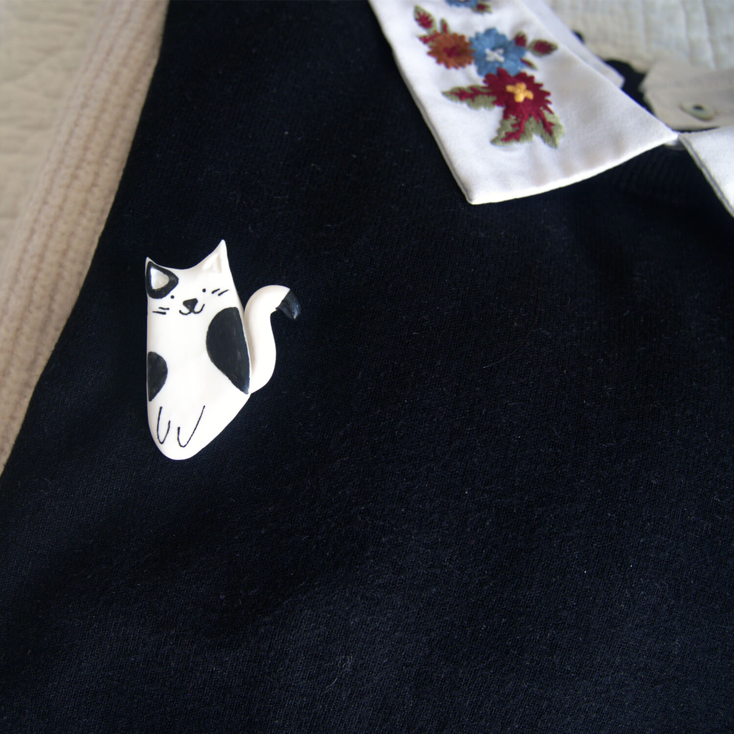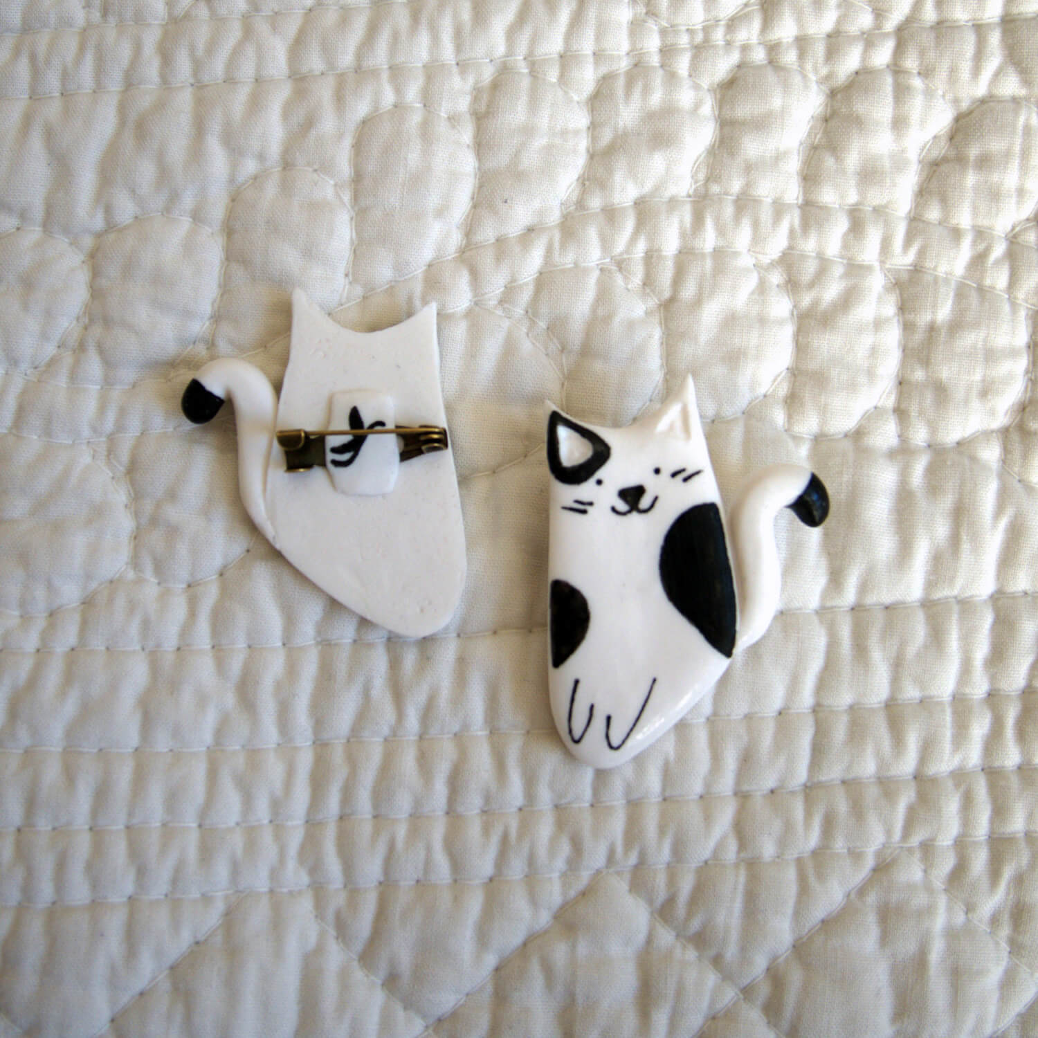 Tel un compagnon miniature à porter sur soi, la broche chat noir et blanc apportera poésie et tendresse à vos pulls, vestes, sac et même trousse.